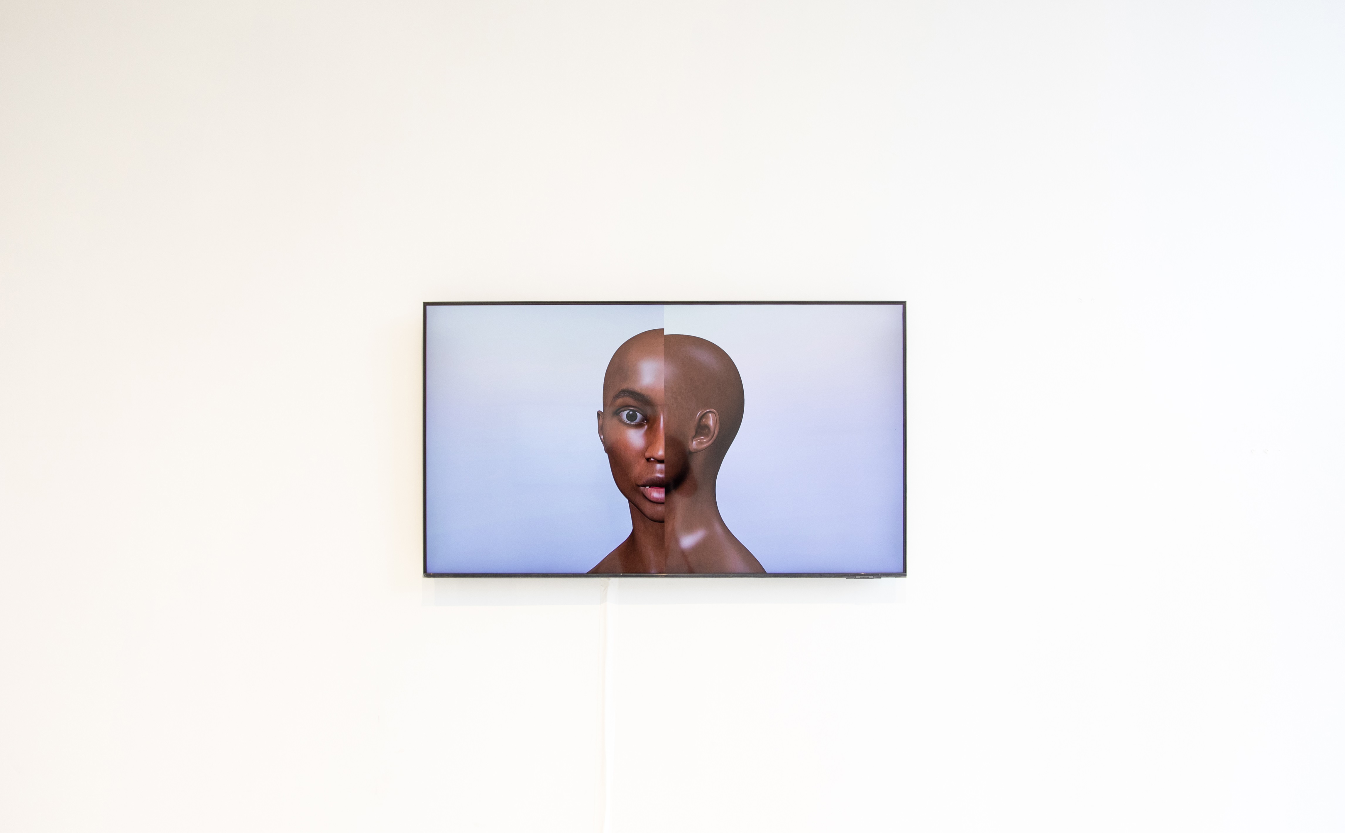 Curated by Magdalyn Asimakis, a central question for Mensah is, “Who determines personhood?” Her artistic inquiries do not only consider digital body modification as an aspirational act of transformation, but also how these desires relate to socio-political acts of oppression against physical bodies. These ‘social horrors,’ as the artist calls the latter, create a desire to escape the body into liberatory digital spaces where one can create the reality they desire. However, at the other end of the spectrum, this catalyzes in-groups that are founded on exclusion. From this, Mensah asks, “What purpose does the body serve when we trade somatic intelligence for artificial intelligence? What is lost? What is repressed?”